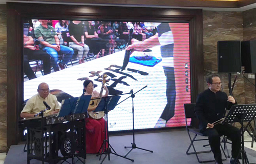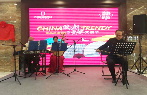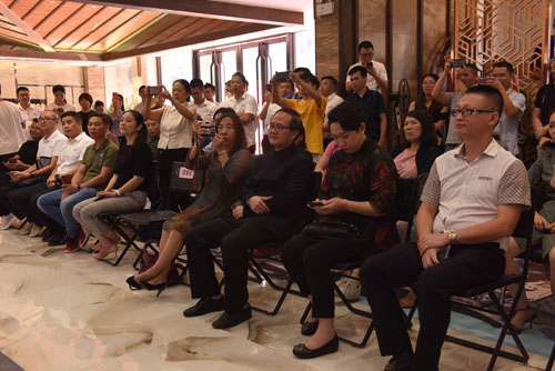 “新品有看頭,空間有文化,品牌有精神!”大唐合盛瓷磚品牌歷經15年的傳承與沉淀,實力助推新國潮,更以實際行動力挺文創。活動當天,大唐合盛瓷磚董事長兼總經理曾志堅攜佛山市社區民樂團一同演奏的《日月潭隨想》、《雁南飛》,奏響國潮韻味;佛山市書法界羅頌梓先生于N°39之“一枝獨秀”產品(800x2600mm )上揮毫“國潮瓷磚”,伴隨著優雅的二胡、揚琴、中阮等聲樂演奏,正式拉開“國潮瓷磚”文創節帷幕。