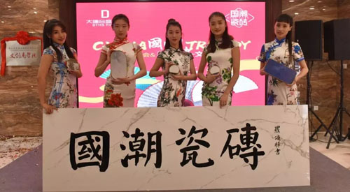風起潮涌,萬物皆潮。2019年10月19日,大唐合盛瓷磚新品品鑒會暨首屆“國潮瓷磚”文創節,于佛山總部展廳精彩上演。從潮流趨勢到國潮理念、從國風傳承到藝術再造,以不一樣的視覺,展開一場“國潮瓷磚+文創節+商學院”的新品品鑒會。來自全國各地的經銷商、設計師、戰略合作伙伴以及媒體朋友,共同見證了這一場別開生面的國潮盛宴。