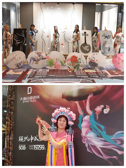 國潮、文創取材于濃厚的傳統元素,在時代潮流的調劑下,跨界文創、國潮好物也應運而生。本次活動上,N°39與傳統古典元素“花、魚、鶴”相碰撞,將獨特的國風藝術創意運用到瓷磚造型中,詮釋傳統文化的跨界與創新;更有旗袍秀、京劇臉譜DIY、油紙傘扇子涂鴉、花樣剪紙折紙……多種跨界表演、文創好物齊齊致敬國粹、經典,得到了眾多經銷商、設計師以及媒體朋友的肯定與贊揚,并紛紛參與活動打造自己的“國潮好物”。